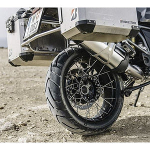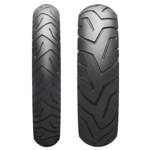 The A41 adventure tyres have evolved from the A40. These are probably 90% road, 10% off road type tyres. They have great stability in all weather conditions and offer exceptionally short braking distance.The tyres are made using three layer technology on the front and on the rear they use a technique known as three layer cap and base.The cap and base has a harder compound layered under a softer compound on the upper section of the shoulder, this helps to increase stability when cornering while maintaining cornering grip by minimizing tyre flex. The tyre has excellent drive out of corners and high-speed stability in a straight line along with great tread life. They are available in lots of sizes for today bigger adventure bikes.