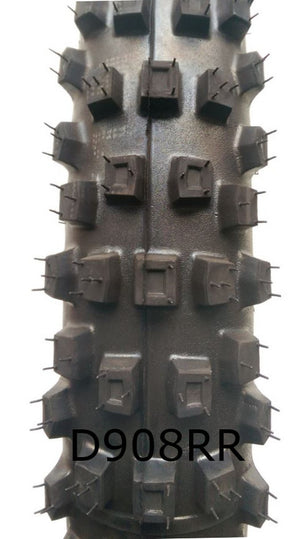 The super durable D908 Rally Raid is Dunlops premium adventure tyre. They are designed for severe abuse in the harshest conditions on powerful bikes. These tyres can handle rocks, hard ground and pavement without knob tear. The tread blocks are reinforced to enhanced traction, stability and the horsepower and weight of bikes like KTM 690, Husky 701 etc. The tyre has generous open space around the shoulder area which helps optimize traction in sand and mud. The carcass is heavy duty for excellent bump absorption and allows lower air pressures for a larger footprint and increased traction without the puncture risk. This is a DOT tyre 18 and 21 inch only.