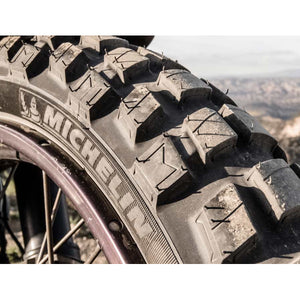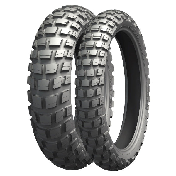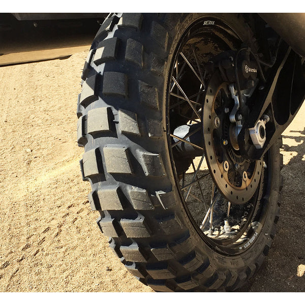 Michelin Anakee Wild is a radial construction tyre designed to handle the harshest conditions a adventure motorcycle can encounter. They have a big block parabolic knob pattern which works very well on and off road. The large gap between the knobs aids off road traction even in wet conditions. The Anakee Wild tyres are a great option for big and small CC adventure bikes that see on and off road usage.