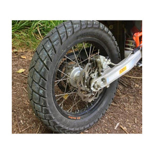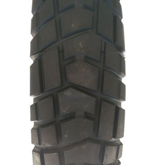 The MT 90 AT is probably the next step, toward a off road tyre when compared to the Scorpion Trail 2. I would call it a 80% road 20% off road. The tread has large central blocks for stability on road at all speeds. The gap between the blocks is a little larger to aid off road traction. The rubber compounds has been optimized with the right amount of silica to ensure high mileage and grip on wet and dry surfaces.
