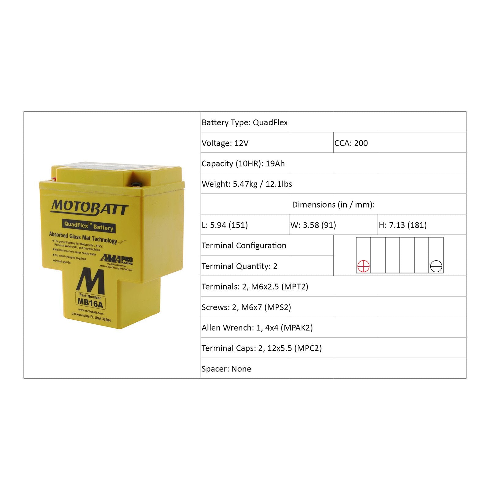 As factory-activated batteries, Motobatt batteries come fully charged for optimum performance and are ready to install right out of the box. They can be used in any position and eliminate the need for handling acid, topping up fluid levels, or removing terminal corrosion.