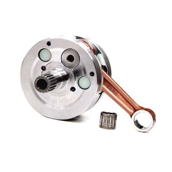 ProX complete crank assemblies make the rebuild job a little more simple. All you have to do is swap it out and your done. You no longer need to send the crank off to get the Rod Kit changed which can save time. These crankshaft assemblies are made in Japan to OE standards. The rod kits are forged ProX items and the crank is precision trued ready to bolt in. Supplied with small end bearing.This crank fits Honda CR 125 1990 to 2004 models.
