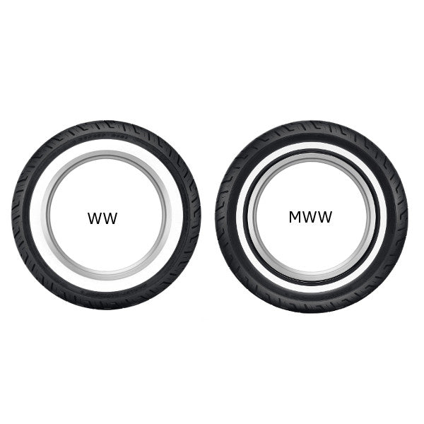 The Dunlop D402 is the approved Harley Davidson touring tyre. These are built using a three ply polyester casing with two fiberglass belts. This gives the D402 a great load carrying capacity and stability. The tread has been computer optimized with a offset center groove to improve grip in all touring conditions and weather while reducing scalloping for even wear. The D402 is available in front and rear black wall, slim white line and wide white wall, all with H speed rating.