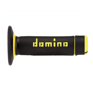 This Domino grip is made using 2 different compound rubbers. The inner compound is firmer for a more positive feel better fitment and durability. This firmer rubber is overlaid with a softer diamond dimple pattern compound rubber for comfort without the spongy feel. The ends of the grips are extra hard to stop them tearing from falls.
