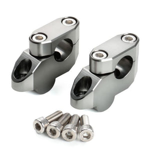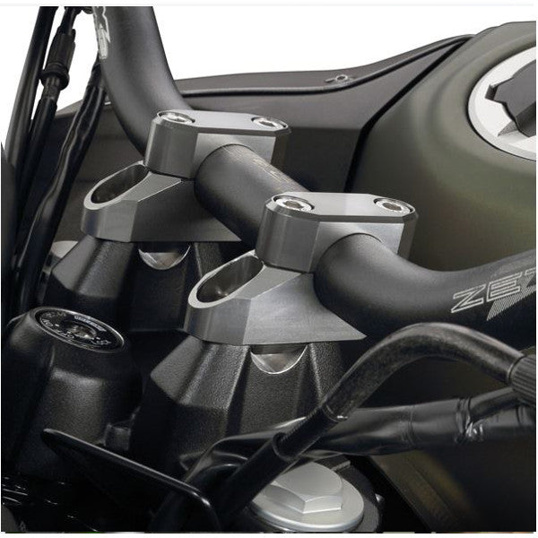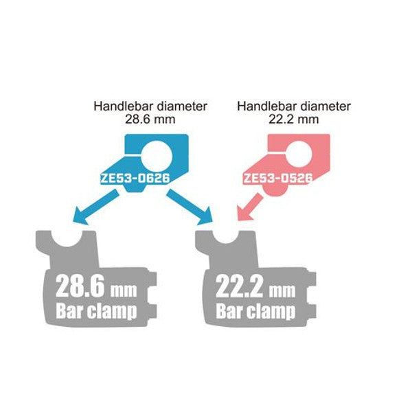 For 22mm (7/8 inch) standard bars and 28mm (1 1/8inch) tapered bars. These Zeta off set bar risers come complete with all mounting hardware you need. You can use these (304-ZE53-0626) to convert a standard 22mm bar to a 28mm tapered bar fitment. With these you can really open up the rider cockpit area. Popular for adventure bikes with tall riders.