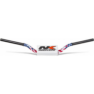 Neken bars are a high quality option for your bike and are original fitment on many brands. They are made in France using T6 7010 aerospace quality alloy so you know your getting the good gear. These Neken bars are a tapered bars design with variable diameter and thickness. Neken bars are a lightweight option while still being super strong. They are designed to flex a little without bending. The center section of the bar is Laser etched for accurate mounting and the clutch side has been knurled to provide excellent handle grip adhesion. Bar bad is included. This senior bar (R00101) has a sweep of 54mm and is 90mm high, a very neutral feel. These bars use the stock grips and throttle and are supplied with the bar pad.