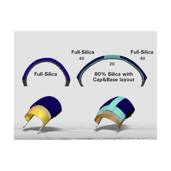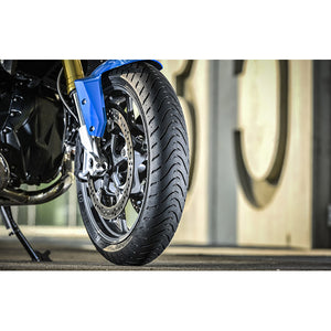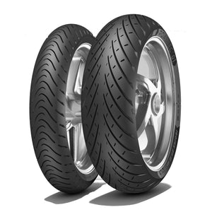 Metzeler are very proud of their Roadtec 01, it is the result of many years and km,s of testing. The front tyre is a full silica single compound radial that provides excellent grip from the compound itself in dry conditions. The front and rear shape and layout of the water grooves move so much water it almost creates dry like conditions giving the rider a confident feel and great feedback. The rear is a dual compound radial with a firmer center strip rubber taking up about 20%. The central stripe has a balanced mixture of silica and carbon to enhance high speed stability, heat dispersal and to provide a balance between abrasion resistance and grip. The shoulder compound (which is similar to the front compound) is designed for excellent grip even on low friction surfaces. Some sizes are available in the HWM version which has a stiffer sidewall designed for heavy bikes that may be loaded up with luggage and a pillion. For other sizes pleas call.