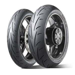The successor to the Dunlop Sportmax Q3, the Sportmax Q3+, offers more longevity on the street and the track plus more grip, stability and steering feel. The Q3+’s new compounds have created a greatly improved tyre. Boasting the same familiar and predictable feel as the Q3, the Q3+ incorporates a new silica enriched center tread compound built into the rear tyre for increased longevity without sacrificing grip. With all of its new compounds, the Sportmax Q3+ offers a better all-around wear balance between the center and sides of the tyre. These tyres have carbon fiber reinforcement caucus Like the original Q3,s. All the improvements made to the plus contributed to added tyre stability, giving the Q3+ more footprint and more grip at max lean angles.