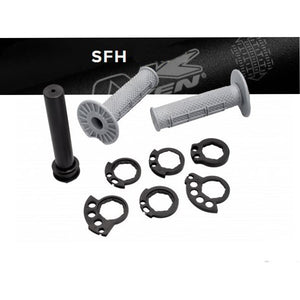This SFH ‘Throttle Grip Set” is to be used with Neken SFH bars only. The inner diameter is smaller to fit the SFH bars. This set also comes with a throttle tube and 6 different throttle cable reels to all late model bikes.